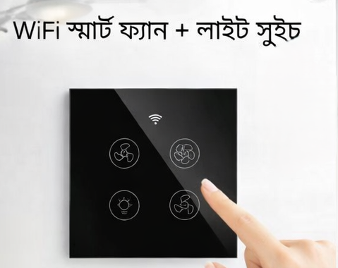 এটি হচ্ছে ওয়াই-ফাই স্মার্ট ওয়াল টাচ লাইট ফ্যান কন্ট্রোলার সুইচ একের ভিতর দুই এগুলো কে আপনি মোবাইল অ্যাপসের মাধ্যমে কন্ট্রোল করতে পারবেন। এই সুইচগুলো চালাতে আপনার বাসায় ওয়াইফাই ইন্টারনেট থাকতে হবে। ইন্টারনেট না থাকলে শুধু টাচ এর মাধ্যমেও কাজ করবে। এই সুইচ গুলো সাদা এবং কালো দুই ধরনের হয় উপরেরটা পার্ট টা গ্লাস প্যানেলের হয়ে থাকে। যা আপনার ঘরের সৌন্দর্য কে নিয়ে যাবে অন্য মাত্রায়। এছাড়া আপনার দৈনন্দিন জীবনকে করবে সহজ থেকে সহজতর।
